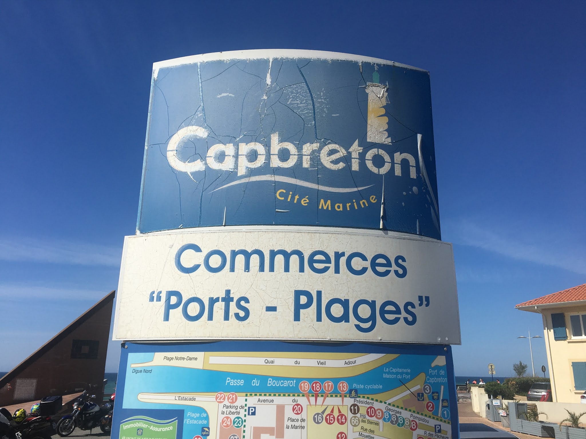 Tijd genoeg vannamiddag om even een bezoekje te gaan brengen aan Capbreton. Volgens Kris het mekka voor alle surfers die hier in de bocht van de atlantische kust hun hartje kunnen ophalen. Volgens ons Chriske komt m’n dochter, ons Mano hier deze week ook nog naar toe. Hopelijk kunnen we ergens afspreken in de loop van deze of volgende week.