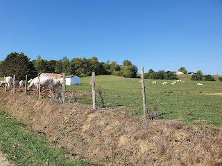 Onwaarschijnlijk, we verlaten Dax en we zitten dadelijk in het voorgebergte van de Pyreneeën. Volgens Died hebben we vandaag 300 hoogtemeters gedaan, een lichte voorproef van wat ons te wachten staat na Saint-Jean. Vandaag was het zoals in de koninginnerit in de Tour de France, volgens mij de mooiste etappe sinds ik vertrokken ben.