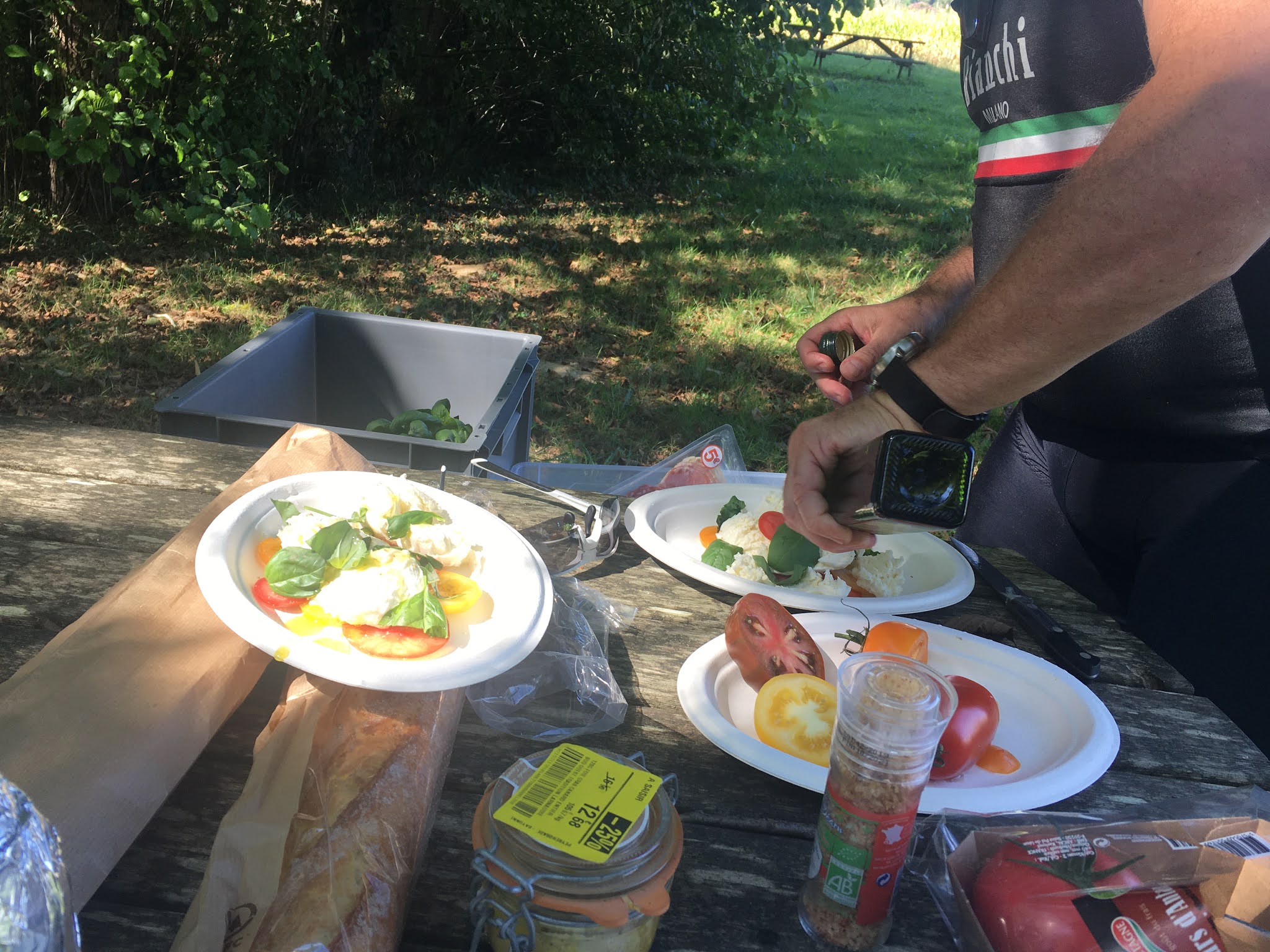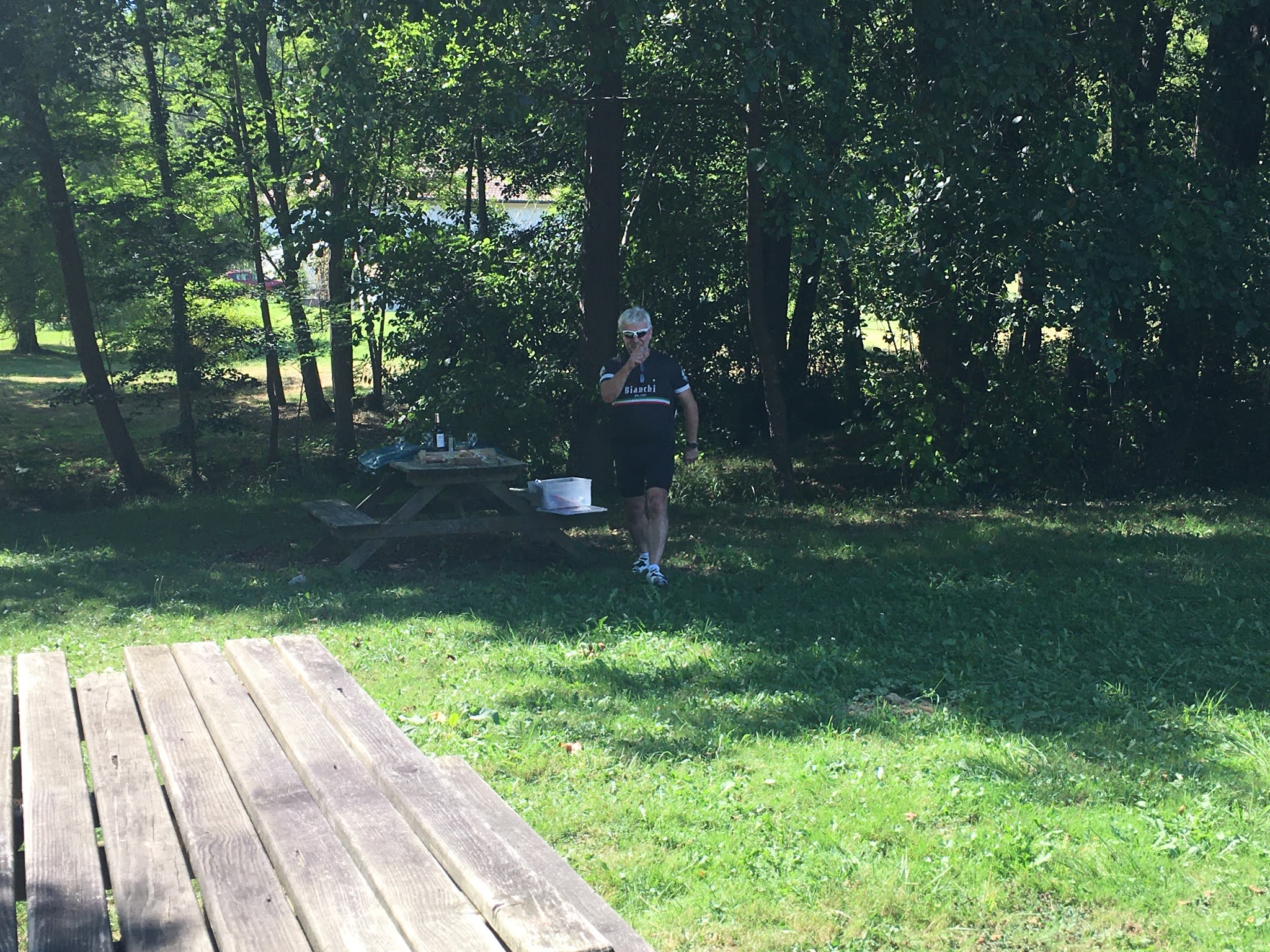 Onderweg werden we verrast door de Kris die een ganse picknick-stand voor ons had klaar gemaakt. Kris rijdt hier rond met z’n auto en met z’n koersfiets en kan ons via de gsm-locatiebepaling vlot terugvinden. Thx Kris voor de lekkere maaltijden die je voor ons hebt klaar gemaakt dezer dagen.