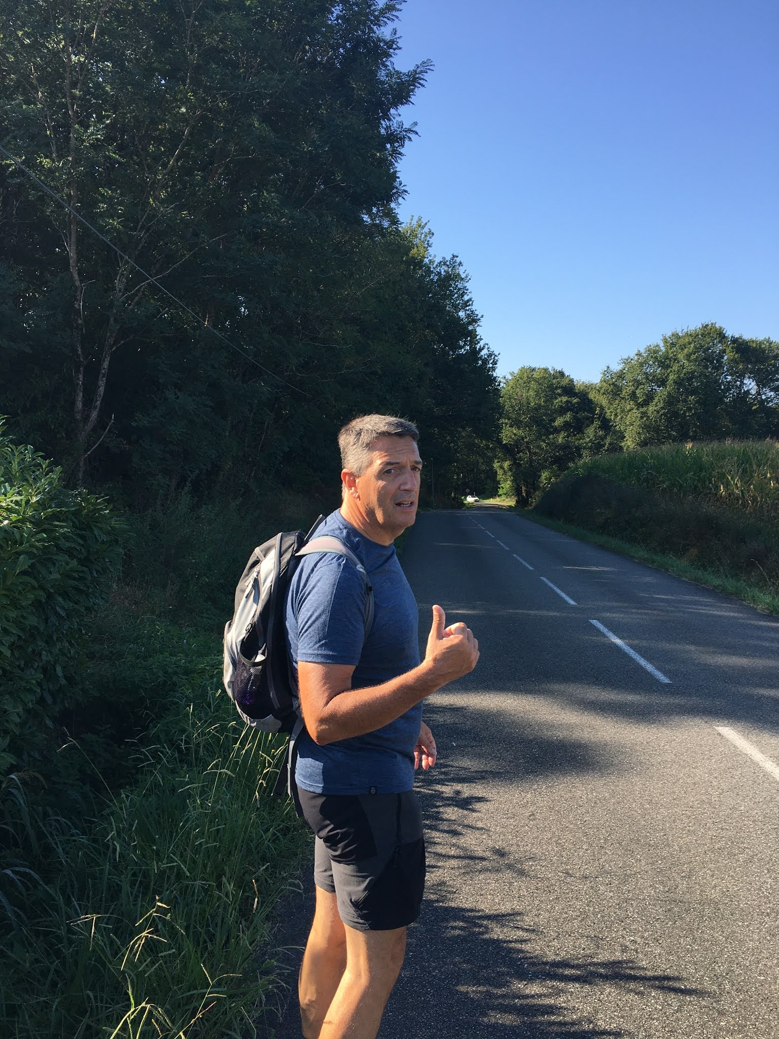 Onwaarschijnlijk, we verlaten Dax en we zitten dadelijk in het voorgebergte van de Pyreneeën. Volgens Died hebben we vandaag 300 hoogtemeters gedaan, een lichte voorproef van wat ons te wachten staat na Saint-Jean. Vandaag was het zoals in de koninginnerit in de Tour de France, volgens mij de mooiste etappe sinds ik vertrokken ben.