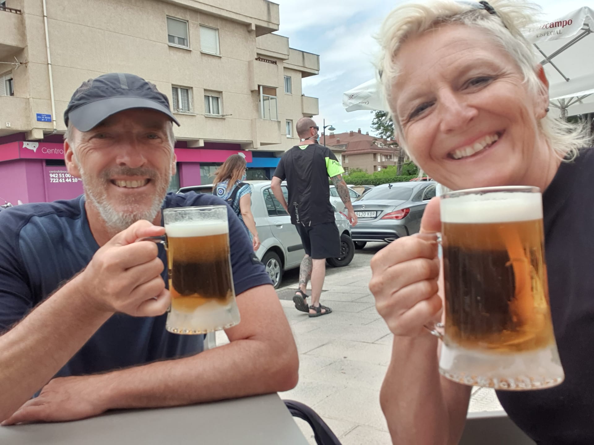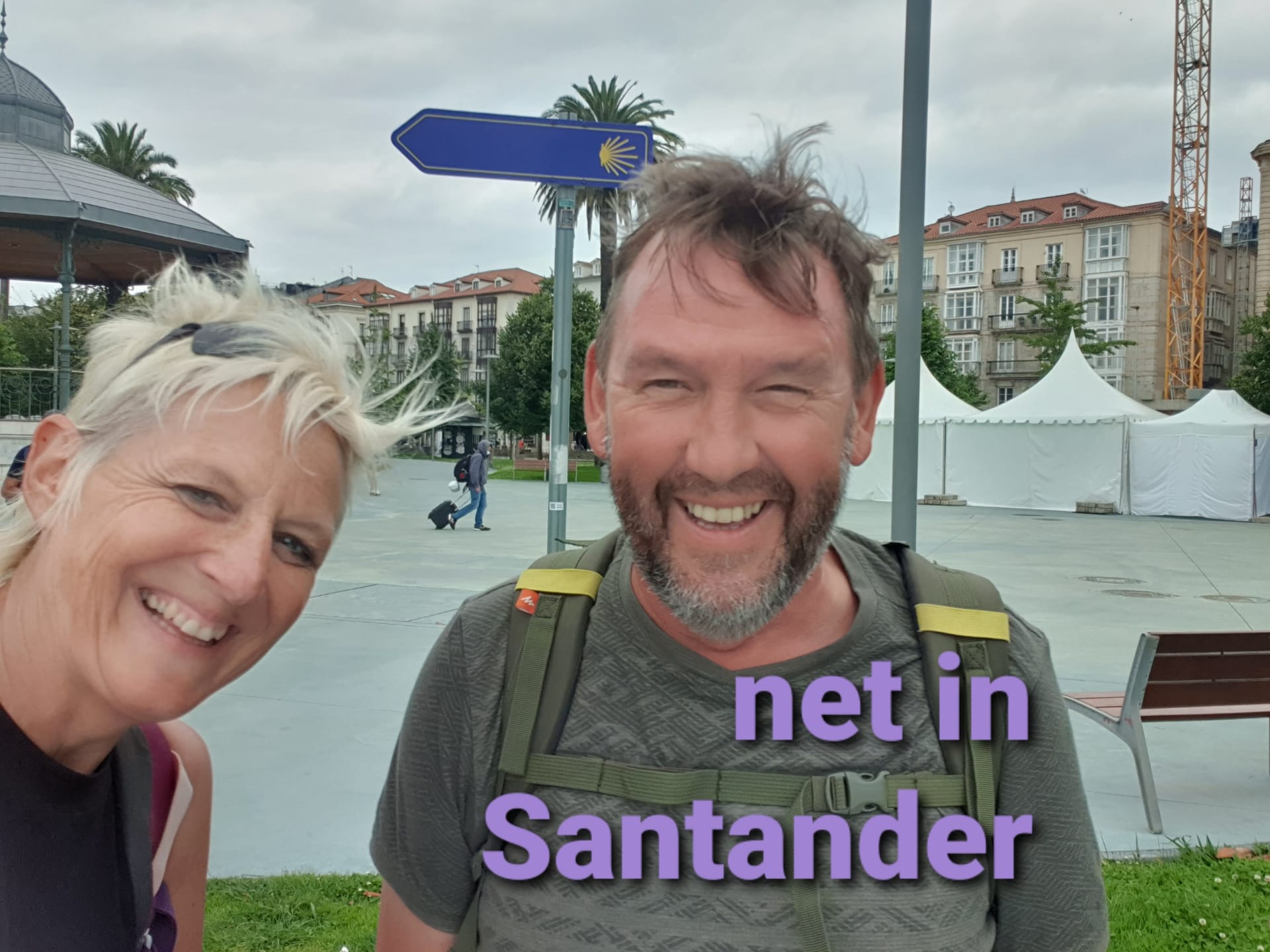Vandaag, zaterdag, de laatste dag dat Reinhilde en Jan meegestapt hebben. Morgen vliegen ze naar Brussel-Zuid vanuit de luchthaven van Santander. Bijgevolg zullen de massa omgevingsfotos en filmpjes veel minder zijn vanaf maandag want zij doen dat echt goed.